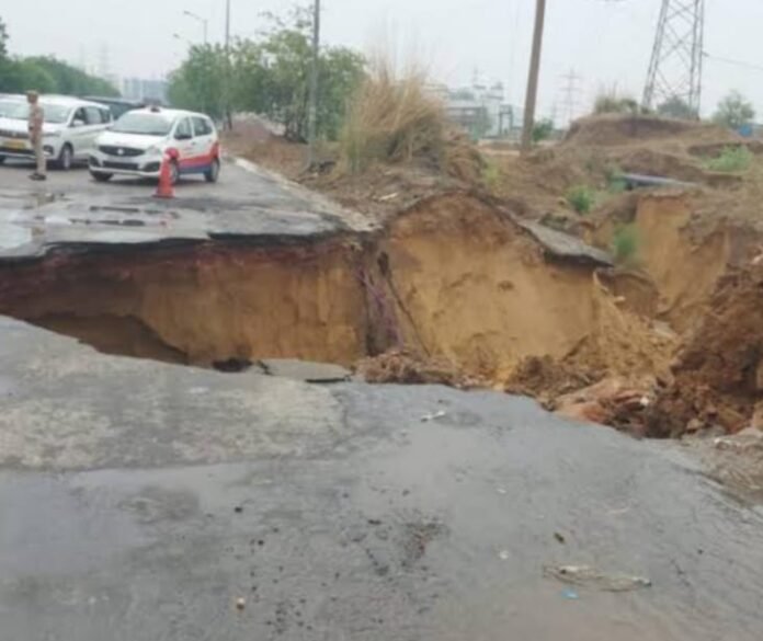 डिवाइडर से टकराकर 10 फीट गहरी खाई में गिरा ट्रेलर